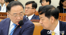 (조세금융신문=김용진 기자) 홍남기 경제 부총리 겸 기획재정부 장관이 12일 오전 국회에서 열린 기획재정위원회 전체회의에서 구윤철 기재부 제2차관과 대화를 하고 있다.