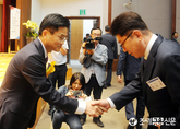 (조세금융신문=김용진 기자) 오문성 한국조세정책학회장과 강병원 더불어민주당 국회의원이 16일 오전 국회의원회관에서 열린 세금계산서 관련 제재 이대로 좋은가 토론회에서 참석자들과 파이팅을 외치고 있다.