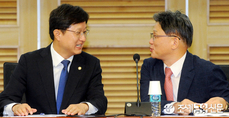 (조세금융신문=김용진 기자) 이인영 더불어민주당 원내대표와 이원욱 원내수석부대표가 11일 오전 국회에서 열린 정책조정회의에서 대화하고 있다.