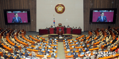 (조세금융신문=김용진 기자)나경원 자유한국당 원내대표가 4일 오전 국회 본회의장에서 교섭 단체 대표 연설을 하고 있다.