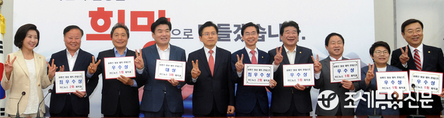 (조세금융신문=김용진 기자)황교안 자유한국당 대표와 나경원 원내대표가 27일 오전 국회에서 열린 유튜브 콘테스트 수상작 시상식을 마친 후 수상을 한 의원들과 기념촬영을 하고 있다.