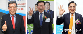 (조세금융신문=김용진 기자)한국세무사회 회장 선거를 이틀 앞둔 12일 후보들이 자신의 기호를 들어 보이며 지지를 호소 하고 있다.(왼쪽부터) 기호1번 원경희 한국세무사회 회장 후보, 기호2번 이창규 한국세무사회 회장 후보, 기호3번 김상철 한국세무사회 회장 후보