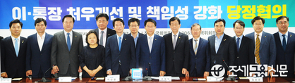 (조세금융신문=김용진 기자)이인영 더불어민주당 원내대표와 진영 행정안전부 장관이 13일 오전 국회 의원회관에서 열린 이,통장 처우개선 및 책임성 강화 당정협의회에 앞서 기념촬영을 하고 있다