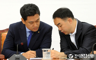 (조세금융신문=김용진 기자)오신환 바른미래당 원내대표와 채이배 의원이 18일 오전 국회에서 열린 원내대책회의에서 대화를 하고 있다.