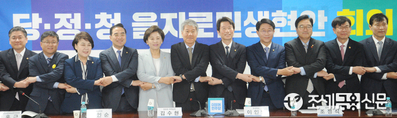 (조세금융신문=김용진 기자) 이인영 더불어민주당 원내대표가 10일 오전 국회 의원회관에서 열린 당정청 을지로민생현안회의에서 참석자들과 포즈를 취하고 있다