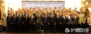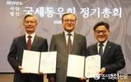 (조세금융신문=김용진 기자) 이건춘 국세동우회 회장과 한승희 국세청장이 10일 오전 서울 여의도 루나미엘레에서 열린 2019년도 국세동우회 정기총회에서 참석자들과 파이팅을 외치며 기념 촬영을 하고 있다.