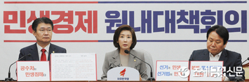 (조세금융신문=김용진 기자)나경원 자유한국당 원내대표가 3일 오전 국회에서 열린 민생경제 원내대책회의에서 발언을 하고 있다. 나 원내대표는 이날 민생경제 원내대책회의에서, "文 대통령이 어제 사회원로 초청간담회에서 다시 한 번 꽉막힌 사고를 보여줬다"며"'답은 정해져 있고 너는 대답만 하면 된다'는 정부는 처음본다"고 말했다.