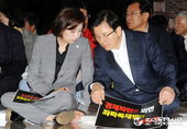 (조세금융신문=김용진 기자)황교안 자유한국당 대표와 나경원 원내대표가 24일 오전 국회에서 열린 비상의원총회에서 대화하고 있다
