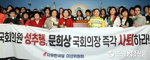 (조세금융신문=김용진 기자)자유한국당 여성의원, 중앙여성위원회 위원이 24일 오후 국회 정론관에서 열린 문희상 국회의장 국회의원 성추행 즉각 사퇴하라는 촉구 기자회견을 하고 있다.