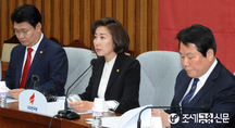 (조세금융신문=김용진 기자)나경원 자유한국당 원내대표가 16일 오전 국회에서 열린 원내대책회의에서 모두 발언을 하고 있다. 나 원내대표는 이날 원내대책회의에서 "오지랖 운운하며 공개적으로 모욕한 북한에 이번 만큼은 대통령이 단호하게 대처하지 않을까 기대했지만 역시는 역시였다. 제가 헛된 희망을 가졌나보다"라고 말했다.
