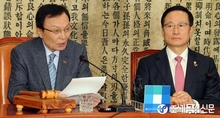 (조세금융신문=김용진 기자)이해찬 더불어민주당 대표가 22일 오전 국회에서 열린 최고위원회 회의에서 발언을 하고 있다. 이 대표는 4·3 보궐선거와 관련 "자유한국당 지도부가 색깔론을 가지고 선거를 치르려 한다"고 비판하며 "선거 운동을 하러 나선 게 아니라 공안정국을 조성하는 과거 관습을 다시 또 꺼낸 느낌이 든다"고 말했다