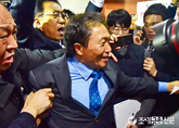 (조세금융신문=김용진 기자)18일 오전 국회 정론관에서 바른미래당 탈당 및 자유한국당 입당 기자회견을 마친 이학재 의원이 바른미래당 당직자들에게 국회 정보위원장직을 내려놓지 않고 자유한국당으로 간다며 거친 항의를 받고 있다