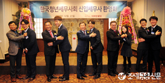 (조세금융신문=김용진 기자)21일 오후 서울 더바인에서 열린 한국청년세무사회 신입세무사 환영식에서 이창규 한국세무사회 회장과 정해욱 한국청년세무사회 상임고문, 임채룡 서울지방세무사회 회장이 제55기 신입세무사들에게 축하하다는 포옹을 해 주고 있다