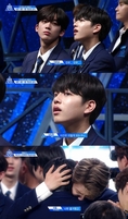 (조세금융신문=김효진 기자) 세 번째 '프로듀스 x101' 순위 발표식 결과 마루기획 이진우 연습생이 탈락의 고배를 마셨다. 애써 담담한 척하던 이진우는 합숙 내내 '아빠'라고 부르며 따랐던 티오피미디어 이진혁 연습생을 껴안고 울음을 쏟았다. 12일 엠넷 '프로듀스 x101'에서는 3차 순위 발표식이 전파를 탔다. 이날 1위 후보 4명의 얼굴이 4분할로 나뉘어져 공개됐지만 이진우는 없었다. 연습생들은 모두 크게 놀라며 "이진우 이렇게 되는구나"라고 안타까워했다. 이진우 본인 또한 자신의 얼굴이 없음을 알아채곤 충격에 빠진 표정이었다. 이에 옆에 앉은 김요한이 대신 이진우를 다독여줬다. 마지막 20위 후보 4분할에서 이진우의 얼굴을 볼 수 있었지만 결과는 22위로 방출이었다. 녹화가 끝나고 이진우 곁으로 달려온 연습생들은 안타까운 위로를 전했다. 이에 이진우는 "이럴 줄 알았으면..."이라며 흐느꼈다. 이후 이진우는 프로그램에서 친분이 남달랐던 이진혁의 품에 안겨서 울음을 쏟아냈다. 이진혁도 안타까움에 눈시울을 붉혔다. 한편 '프로듀스 x101' 이진우의 탈락에 팬들은 적잖은 허탈감과 충격을 호소하고 있는 상황이다. '프로듀스 x101' 3차 순