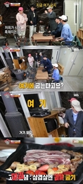 (조세금융신문=김효진 기자) 방송인 전유성만의 삼겹살 비법이 공개됐다. 28일 재방송된 SBS '집사부일체'에선 흑돼지 삼겹살 구이 만찬을 즐기는 멤버들과 전유성의 모습이 그려졌다. 이날 이승기가 "저희가 사온 흑돼지는 어떻게 할까요?"라고 묻자 그는 "여기에 굽지"라며 장작불 방향을 가리켰다. 이에 육성재는 가마솥 뚜껑과 장작불을 쳐다보며 "여기요?"라며 '솥뚜껑 삼겹살 구이'에 대한 기대감을 드러냈다. 그러나 그는 휴대용 가스버너를 꺼내며 "여기에 구워야지"라고 대답해 웃음을 자아냈다. 이를 본 양세형은 "고정관념을 깨야 한다. 가마솥이 있다고 여기에 구울 거라고 생각하지 마라. 지리산에도 부르스타(?)가 있다"라고 일침 해 멤버들을 폭소케 했다. 이어 전유성은 김치 대신 삼겹살 옆에 딸기와 바나나를 굽는 모습을 보여줘 멤버들을 깜짝 놀라게 했다.