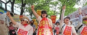(조세금융신문=방영석 기자) 암 입원일당보험금 지급을 놓고 법정 공방을 벌이고 있는 삼성생명과 암 환우 단체 사이의 감정의 골이 깊어지고 있다. 7일 보험업계에 따르면 삼성생명은 최근 암 환우 단체 ‘보험사에 대응하는 암환우 모임(이하 보암모)’의 김근아 대표를 집시법 위반 및 명예훼손 혐의로 서초경찰서에 고발했다. '보암모'는 작년 9월 기습적으로 삼성생명 본사 앞에 컨테이너를 설치, 현재까지 농성을 이어가고 있으며 정기적으로 보험금 미지급을 규탄하는 집회를 개최하고 있다. 삼성생명 측은 해당 집회가 사전에 관할 경찰서에 신고되지 않았을 뿐 아니라 반복된 시위로 업무에 심대한 지장을 줄 정도의 소음이 발생하고 있다는 입장이다. 아울러 암보험입원일당 보험금 지급의 정당성을 놓고 법원에서 소송이 진행 중임에도 삼성생명이 고의적으로 보험금을 지급하지 않고 있다는 보암모의 주장이 문제가 됐다. 대법원 판결이 나오기 이전임에도 불구, 삼성생명이 불법적인 방법을 통해 보험금을 미지급했다는 이 같은 주장이 삼성생명의 이미지를 크게 훼손하고 있다는 것. 삼성생명 관계자는 “장기간 과도한 소음을 비롯한 위법적인 행위로 집회를 이어옴에 따라 업무에 심대한 지장이 발생했다”며