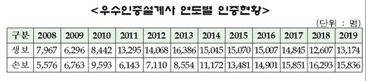 (조세금융신문=방영석 기자) 생명보험협회와 손해보험협회가 2019년 우수인증설계사 2만9010명을 선정했다. 양 협회는 보험상품의 완전판매 및 건전한 모집질서 확립을 위해 2008년부터 우수인증설계사 제도를 운영하고 있다. 4월부터 5월까지 진행된 심사에서 생보협회는 생명보험업계 설계사 1만3174명을, 손보협회는 손해보험업계 설계사 1만5836명을 올해 12번째 인증자로 최종 결정했다. 생보업계 우수인증설계사는 평균 13.9년의 근속기간 동안 8927만원의 연평균 소득을 거뒀으다. 이 기간 해당 설계사들은 양호한 13회차(97.6%)와 25회차(91.9%) 유지율은 물론 불완전판매는 한 건도 발생하지 않았다. 손보업계 우수인증설계사 역시 평균 14.1년의 근속기간 중 1억347만원의 연평균 소득을 기록했으며 96%의 13회차 유지율과 0건의 불완전판매건을 나타냈다. 우수인증설계사는 근속기간과 13회 및 25회 신계약유지율, 모집실적과 불완전판매건수 등의 지표를 종합적으로 고려해 선정되며, 인증서 발급 및 인증로고 사용권 부여 혜택을 받는다. 생‧손보협회는 보험사와 함께 인증자의 사기진작과 일반인들의 제도인식 확대를 목표로 지속적으로 홍보활동을
