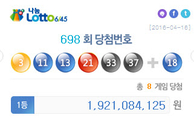 (조세금융신문=양학섭 기자)나눔로또는 16일 오후 로또복권 제698회 추첨에서 1등 당첨번호가 '3·11·13·21·33·37'번이라고 발표했다.2등의 보너스번호는 '18'번이다.당첨번호 6개를 모두 맞힌 1등 당첨자는 8명으로 각각 19억2천만원씩을 받게된다.당첨번호 5개와 보너스번호 '18'을 맞힌 2등은 48명으로 5,336만원씩을 받는다.당첨번호 5개가 일치한 3등은 2,088명으로 각각 122만원씩을 받게된다.당첨번호 4개를 맞힌 4등(고정 당첨금 5만원)은 9만7천965명, 당첨번호 3개가 일치한 5등(고정 당첨금 5000원)은 155만364명이다.