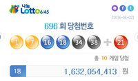 (조세금융신문=양학섭 기자)제696회 나눔로또복권 추첨 결과가 나왔다.나눔로또는 2일 제696회 로또복권 추첨에서 '1, 7, 16, 18, 34, 38'이 1등 당첨번호로 뽑혔다고 밝혔다. 구매방식은 자동이 6명, 수동이 4명으로 총 10명이 나왔다.당첨번호 6개를 모두 맞힌 1등 당첨자는각각 16억3200만원씩 받는다.당첨번호 5개 번호와 보너스 번호를 맞힌 2등은 44명으로 6천182만원씩을 받게 된다. 3등인 번호 5개를 맞춘 사람은 1721명으로 158만원씩 받는다. 당첨번호 4개를 맞힌 4등(고정 당첨금 5만원)은 9만20명, 당첨번호 3개가 일치한 5등(고정 당첨금 5천원)은 150만1천952명이다. 전국에서 가장 많은 1등 당첨자를 배출한 곳은 경기(동두천, 양주시)와 충남(천안, 아산)으로 각각 2곳씩 나왔다. 그리고 서울, 부산, 대구, 인천, 전남, 경남은 각각 1곳씩으로 총 10곳에서 당첨됐다.