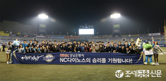(조세금융신문=양학섭 기자)BNK금융그룹 경남은행이은 홈에서 벌인 NC다이노스를 응원했다. BNK금융그룹 경남은행은 지역 연고 프로야구구단의 선전을 기원하기 위해 ‘CEO와 함께하는 NC다이노스 개막전 관람행사’를 가졌다.지난 1일 오후 손교덕 은행장과 임직원 300여명은 마산종합운동장을 찾아 2016 KBO리그 NC다이노스와 KIA타이거즈 경기를 관전했다.임직원들은 다이노스틱 응원도구를 들고 관전 온 지역민과 함께 열띤 응원전을 펼쳤다.손교덕 은행장은 “300여명의 임직원들이 지역민과 함께 하나되어 응원하니 축제가 따로 없었다. 지역 연고 프로야구구단인 NC다이노스가 올해는 우승을 차지하기를 기원한다”고 말했다.NC다이노스 홈 개막전은 BNK금융그룹 경남은행 임직원과 지역민들의 응원에 힘입어 NC다이노스가 KIA타이거즈에 5대 4로 승리했다.한편 경남은행은 지난 2월 창원시가 개최한 ‘NC다이노스 2016 시즌티켓 구입 행사’로 참여해 관중유치에 힘을 보태고 있다