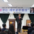 (조세금융신문=양학섭 기자)창원세무서(서장 유세영)는 지난 15일 오전 10시 조용근(전 대전국세청장) 천안함재단 이사장을 초청하여 ‘감동주는 세무공무원상’이라는 주제로 명사특강을 실시했다고 18일 밝혔다. 이번 강연은 신규직원 수가 늘어남에 따라 민원응대요령을 포함하여 직원 친절교육의 필요성에 따라170여 직원이 참석한 가운데 약 두시간 동안 선배로서 자신이 걸어온 길을 여러 가지 일화와 함께 재미있게 소개하는 시간을 가졌다. 조용근 전 대전국세청장은 1966년 국세청 개청과 함께 9급으로 시작해 대전국세청장을 끝으로 36년간의 공직생활을 해오면서 겪었던 성공과 실패 사례를 소개하고, 세무공무원으로서 지녀야 할 소양, 마음가짐, 태도 등에 대하여 자신의 경험담을 곁들인 현장감 있는 강연으로 직원들이 선배의 삶을 타산지석으로 삼는 계기가 되었다. 특히, 석성장학회, 석성일만사랑회, 밥퍼 등 다양한 봉사활동을 소개하며 작은 일부터 실천하는 봉사와 나눔의 삶을 살자고 제안했다. 또 올해 국세청도 개청 50주년을 맞아 반백의 나이가 되었으며, 이제는 “오늘 이 자리에, 가까이 있는 자부터(민원인 포함) 만족을 넘어 감동을 주는 세무공무원”이 될 것을 주문했