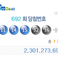 (조세금융신문=양학섭 기자)로또복권 692회 추첨결과가 발표됐다. 5일 나눔로또에 따르면 692회 나눔로또 1등 당첨번호는 3, 11, 14, 15, 32번으로, 보너스 번호는 44다. 로또 692회 6개의 번호를 모두 맞춘 당첨자는 총 7명으로 1인당 23억127만원씩 받게된다. 선택 방식은 7명중 4명은 수동, 3명은 자동이 1등에 당첨됐다. 당첨번호 5개 번호와 보너스 번호를 맞힌 로또 2등은 44명으로 당첨금액은 6천101만원씩이다. 로또 당첨번호 5개 번호만 맞힌 3등은 1천770명으로 151만원씩을 받는다. 당첨번호 4개를 맞춘 4등은 고정 당첨금 5만원, 3개를 맞춘 5등은 5000원을 받는다.한편 로또 1등 지역별 당첨판매소는 경북에서는 성주군과 구미시 2곳과 서울, 부산, 인천, 전북 전주시, 경남 창원시가 각각 1곳씩이다.