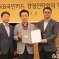 강원도 평창에서 열린 하반기 경영전략회의 및 '소비자중심경영' 선포식 후 김덕수 KB국민카드 사장(가운데)과 이재흥 상무 겸 금융소비자보호 총괄책임자(오른쪽), 한용석 소비자보호부장(왼쪽)이 기념 사진 촬영을 하고 있다.(조세금융신문=양학섭 기자) KB국민카드(www.kbcard.com/사장김덕수)는7월3일강원도평창에서김덕수사장등전경영진과부점장이참석한가운데하반기경영전략회의를열고‘소비자중심경영’선포식을개최했다.이와관련KB국민카드는△소비자관점에서가치창출주요활동전개△소비자불만사전예방및소비자만족의지속적향상△공정하고투명한윤리경영을통한건전한금융산업발전도모등을&nb