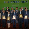 제15회 '감사대상' 시상식을 마치고 수상자들과 기념촬영.(조세금융신문)한국상장회사협의회(회장정구용)는모범적인감사운영사례의발굴·표창을통해감사기능의중요성에대한기업과사회의인식을제고하고감사업무종사자들의역할과사기를진작시키기 위해지난2000년부터“감사대상”을제정하여매년시상하고있다.이번에 실시한 감사대상은제15회로7월10일오전10시,한국거래소본관1층국제회의장에서금융감독원이후원하고,한국상장회사협의회와한국공인회계사회가공동으로개최했다.수상부문은 먼저법인부문, 유가증권시장상장법인부문은2개사로부광약품㈜과㈜현대백화점이각각 받았다.부광약품은자산규모가2조원이넘지않는중소형유가증권시장상장법인으로감사위원회설치의무가없는데도자발적으로설치·운영하고있으며,감사위원전원이전문능력을보유한사외이사로구성되어독립적인감사업무및내부통제제도에관한다양한개선방안제시등활발한감사활동을수행하고있다.또한감사위원회는내부감사부서책임자의임면동의권과감사관련규정개정의사전동의권을가지고있으며,내부감사부서의경우독립적인예산편성및집행권을가지고있는등독립성에서우수한평가를받았다.그리고현대백화점은윤리헌장을제정하고,윤리실천사무국을운영하면서윤리경영실천평가시스템을구축하는한편,공정거래를강화하기위해동반상생팀을신설·운영하는등공정하고투명한거래질서확립과사회적