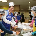 DGB금융그룹 박인규 회장이 ‘DGB와 함께하는 영양만점, 사랑의 밑반찬’ 나눔행사에 직접 참여하고 있다.DGB금융그룹(회장박인규)은DGB사회공헌재단을통해14일(월)대구은행본점지하식당에서조손가정아동및청소년들에게영양과맛을겸비한정성껏만든밑반찬등을전달하는‘DGB와함께하는영양만점,사랑의밑반찬’나눔행사를가졌다.금번행사는DGB사회공헌재단에서직접실시하는‘DGB조손가정토탈케어(Total-Care),With-U'사업의일환으로실시되었으며,본사업의직접참여자인그룹직원(멘토),‘With-U학습튜터대학생봉사단'의대학생(학습멘토),직접수혜자인대구지역아동및청소년(멘티),위탁가정어머니들이어우러져함께참여하는행사여서더욱의미가깊다.With-U사업은부모의보호를받지못하고생활하는조손가정아동및청소년들의성장과정을직접돌봐주고지원해주는사업으로,DGB금융그룹각계열사및대구은행직원(멘토)이대구지역의조손가정아동및청소년(멘티)100여가구118명과1:1자매결연을맺고생활과교육⦁건강⦁문화등전분야에걸쳐지속적으로지원해주는사업이다.이외에도결연을맺은아동및청소년들에게매월정기용돈지급,매주1회학생봉사자를통한학습도우미지원,건강검진지원등고등학교졸업후성인으로자립능력을갖출때까지멘티들에
