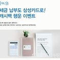 (조세금융신문=옥정수 기자) 삼성카드가 오는 30일까지 국세와지방세를 삼성카드로 납부하는 고객들에게 캐시백 등을 제공하는 이벤트를 진행한다.먼저 행사기간동안 삼성카드로 국세를 납부하는 고객 중 추첨을 통해 300만원 등의 캐시백을 제공한다. 이벤트는 삼성카드로 부가가치세, 종합소득세 등의 국세를 납부하면 자동 응모된다.국세를일시불로 납부하는 모든 고객들에게는 1%의 캐시백 혜택이 주어진다.국세 또는 지방세를 5만원 이상 납부 시에는2~3개월 무이자할부 혜택과 함께 6개월 또는 10개월 다이어트할부 혜택을 제공한다. 6개월 다이어트할부의 경우 1회차 할부수수료를, 10개월 다이어트할부는 1~2회차 할부수수료만 납부하면 된다.삼성카드 관계자는 “세금납부가 많은 연말을 맞아 편리하고 실속 있게 세금을 납부할 수 있도록 이벤트를 준비했다”며 “앞으로도 생활 속에서 실용적인 혜택을 체감할 수 있는 다양한 서비스를 제공할 계획”이라고 말했다.
