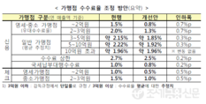 (조세금융신문=옥정수 기자) 이르면 내년 1월 말부터 신용카드 가맹점 수수료율이 영세·중소 가맹점은 0.7%포인트, 연매출 10억원 이하인 일반가맹점은 평균 0.3%포인트 인하된다.2일 새누리당과 금융위원회는 당정협의를 거쳐 이런 내용을 골자로 하는 카드수수료 인하 방안을 확정했다고 밝혔다.조정안에 따라 현재 단일 우대수수료율 1.5%를 적용받는 연매출 2억원 이하 영세가맹점은 0.8%로, 2.0%를 적용받는 연매출 2억원 초과~3억원 이하 중소가맹점은 1.3%로 종전보다 각각 0.7%포인트 인하된다.일반가맹점(연매출 3억원 초과~10억원 이하)도 카드사의 인하를 유도해 현재 2.2% 수준인 평균 수수료율을 1.9%로 0.3%포인트 낮추기로 했다.현재 2.7% 수준인 수수료율 상한은 2.5%로 하향조정한다.신용카드로 국세를 낼 때 적용하는 국세납부 대행수수료율도 1.0%에서 0.8%로 낮추기로 했다.이와 함께 일반가맹점의 체크카드 수수료율을현재 1.7%인 비은행 전업카드사 수수료율과1.5%인 은행 수수료율을 1.5%로 통일하기로 했다.금융위는 이번 수수료율 인하 조치로 전체 카드 가맹점의 97%에 해당하는 238만개 가맹점이 0.3∼0.7%포인트의 수수료율