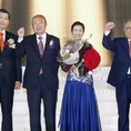 한화그룹 김승연 회장(좌측에서 두번째)과 한화생명 김연배 부회장(맨 우측) 및 차남규 사장(맨 좌측)이 올해 여왕상 수상자인 정미경(좌측에서 세번째) 영업팀장과 함께 기념촬영을 하고 있다.(조세금융신문=옥정수 기자)“한화생명이자산100조원시대를열고세계초일류보험사로도약하는한해로만들자”김승연한화그룹회장은15일,경기도고양시에위치한킨텍스에서열린‘2015년연도상시상식’에서“한화생명이위대한100년기업으로나가기위해고객과함께하는동반자로서신뢰받는FP가되어주길바란다“며이같이밝혔다.그는“한화생명은그룹의심장과도같은회사이자핵심성장축”이라며“이는그룹내중요한