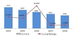 (조세금융신문=이기욱 기자)지속적인 예방 노력으로 매년 금융사고 발생 건수가 줄어들고 있는 것으로 확인됐다. 14일 금융감독원이 발표한 자료에 따르면 지난해 발생한 금융사고 건수는 전년(162건) 대비 10.5%(17건) 줄어든 145건을 기록했다. 2014년(237건) 이후 5년 연속 감소세를 이어가고 있다. 다만 사고금액은 1289억원으로 전년(1204억원) 대비 7.1%(85억원) 늘어났다. 사고금액 10억원 미만 소액 금융사고가 전체의 86.9%를 차지하고 있으며 10억원 이상 중대형 금융사고(19건)가 전체 사고금액의83.2%를 차지하고 있다. 유형별로는 ‘횡령·유용’이 75건으로 가장 많은 건수를, ‘사기’가 699억원으로 최고 사고금액을 기록했다. 업권별로는 은행의 경우 사고건수와 금액이 모두 증가하는 모습을 보였다. 전년 대비8건 증가한 49건의 금융사고가 발생했으며 사고금액은 223억원에서 623억원으로 무려 400억원이나 늘어났다. 금융투자업권 역시 사고건수와 금액이 모두 늘어났다. 건수는 19건으로 전년 대비 12건 증가했으며 금액은 246억원 늘어난 298억원으로 나타났다. 중소서민 분야는 건수와 금액 모두 각각 전년 대비 13