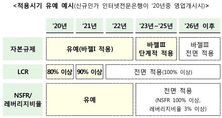 (조세금융신문=이기욱 기자)이달 예비인가 발표를 앞두고 있는 제3 인터넷전문은행은 영업 후 한동안 바젤Ⅲ 적용을 유예받을 수 있게 됐다. 금융위원회는 15일 정례회의를 열어 이같은 내용의 ‘은행업감독규정 개정안’과 ‘금융지주회사 감독규정 개정안’을 의결했다고 밝혔다. 금융위에 따르면 신규 인가를 받은 인터넷전문은행들은 경영이 안정화될 때까지 적응기간이 필요한 것으로 판단된다. 설립 초기 조직·인력 운영과 영업활동, 혁신적 서비스 창출 등 다양한 경영상 도전에 직면하면서 동시 영업행위 규제 등 건전성 규제 적응 부담도 발생하기 때문이다. 특히 바젤Ⅲ 규제의 경우 준수하기 위한 인프라 구축에 시간과 비용이 많이 소요돼 자산규모가 크지 않은 은행들은 적용에 어려움을 겪을 수밖에 없다. 이미 케이뱅크와 카카오뱅크 등 기존 인터넷전문은행들도 적응기간을 부여 받았다. 바젤Ⅲ 규제비율은 크게 ▲자본규제 ▲유동성커버리지비율 ▲순안정자금조달비율 ▲레버리지비율 등으로 구성된다. 우선 자본규제에 대해서 신규 인가 인터넷전문은행은 영업개시년도 이후 2개 회계연도에 걸쳐 바젤Ⅰ을 적용받으며 3년이 경과한 날을 포함하는 회계연도부터는 바젤Ⅲ를 단계적으로 적용한다. 전면 적용