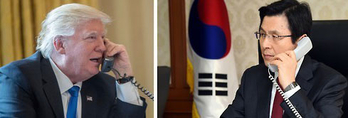 (조세금융신문=이유리나 기자) 황교안 대통령 권한대행과 트럼프 미국 대통령이 전화통화를 갖고 북한의 탄도미사일 도발 대응 및 한미 공조 방안 등에 대해 논의했다. 7일 국무조정실에 따르면 이날 오전 8시40부터 20여분간 미 측 요청에 의해 도널드 트럼프 미국 대통령과 황 대행이 전화통화를 했다. 이날 통화에서 양측은 북한의 이번 탄도 미사일 발사가 유엔 안보리결의 위반일 뿐 아니라 국제사회에 대한 도발로서 엄중히 대처해야 하며, 북한에 대한 제재 및 압박과 현재 진행중인 한미 연합훈련 등을 포함한 연합 방위태세를 더욱 강화해 나감으로써 북한의 전략적 셈법을 지속 바꾸어 나가야 한다는 데 의견을 같이 했다. 또 황 권한대행은 북한의 핵, 미사일 위협은 한미 양국에 대한 현존하는 직접적 위협으로서 강력한 한미 동맹을 통해 대북 억제력과 대응태세를 강화하면서 북한의 야욕을 꺾어야 할 것임을 강조했다. 이에 대해 트럼프 대통령은 “전적으로 공감을 표하고 미국 정부는 지난 번 밝힌 바와 같이 한국의 입장을 100% 지지하며 앞으로도 계속 그럴 것”이라고 한 것으로 알려졌다. 또 양측은 앞으로도 필요한 경우 언제든 전화통화 등 신속한 협의를 통해 상호 협력과 공조를