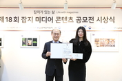 (조세금융신문=이유린 기자) 한국잡지협회가 13일 오후 2시 서울 영등포구 잡지회관 내 한국잡지박물관 M미술관에서 ‘제18회 잡지미디어콘텐츠 공모전 시상식’을 개최했다. 잡지미디어콘텐츠 공모전은 잡지 읽기 문화를 확산하고 창의적인 콘텐츠를 발굴을 위해 매년 열리는 행사로, 잡지를 사랑하는 시민들이 직접 참여해 잡지의 가치를 새롭게 조명하는 자리다. 올해 공모전은 글쓰기·만화/그림·영상·사진 등 4개 부문으로 진행됐다. ▲잡지를 통해 영향을 받은 이야기 ▲소개하고 싶은 잡지 이야기 ▲일상 속 잡지와 함께한 순간 ▲잡지사 기자가 된다면 써보고 싶은 기사 ▲내가 만들고 싶은 잡지 ▲잡지가 있는 삶의 풍경 등을 주제로 다양한 작품이 출품됐다. 전국 각지에서 청소년부터 일반인까지 폭넓은 세대가 참여해 310여 편의 작품이 접수됐으며, 예심과 본심을 거쳐 대상·최우수상·우수상·특별상·장려상 등 총 12개 작품이 선정됐다. 대상은 김예원 씨의 ‘잡지를 걷는 사람들’이 차지했다. 푸른 풀밭 한가운데 펼쳐진 잡지 속으로 사람들이 들어가 자유롭게 뛰놀고 있는 모습을 그림으로 형상화한 작품으로, 잡지가 단순한 읽을거리를 넘어 사람과 사람을 이어주고 사람들이 쉬고 즐기고 정보와