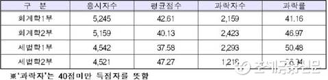 (조세금융신문=이지한 기자) 제56회 세무사 2차 시험 합격자 724명 가운데 20대가 349명으로 48.2%를 차지해 가장 많은 합격자를 배출했다. 이번 세무사 2차 시험은 6460명이 시험을 접수한 가운데 5245명이 응시해 81.19%의 응시율을 보였다. 합격자는 예상 인원 700명을 웃도는 724명으로 최종 확인됐다. 동점자가 많았기 때문인 것으로 분석된다. 합격률은 13.8%를 기록했다. 평균 점수가 가장 높았던 과목은 세법학 2부로 4521명이 응시해 47.27점의 평균점수를 기록했고 과락자는 1218명(과락률 26.94%)으로 나타났다. 이어 회계학 1부에는 5245명이 응시해 평균 42.61점으로 과락자수는 2159명(41.16%)이다. 회계학 2부는 5159명이 응시해 평균 40.13점을 기록했고 과락자는 2423명(46.97%)이며, 평균점수가 가장 낮았던 세법학 1부는 4542명이 응시해 평균점수 37.58점, 과락 2423명(46.97%)를 기록했다. 전체 합격자 724명 가운데 남성 합격자는 478명(66.02%), 여성합격자는 246명(33.98%)를 차지해 지난해 치러졌던 제55회 세무사 2차 시험 (여성합격자 35.15%)에 이어