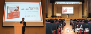 (조세금융신문=이지한 기자)한국세무사고시회(회장 권한대행 곽장미)는 지난 23일 서울 종로구 소재 한국교회 100주년 기념관에서 세무·회계사무소 업무가이드 핵심 실무교육을 실시했다 이날 강의는 한국세무사고시회에서 기획한 "혼자서 터득하는" 핵심세무시리즈의 첫 결과물인 ‘혼자서 터득하는 세무·회계사무소 업무가이드(저자 이석정·김희철)’를 교재로 이석정 세무사의 저자 직강으로 진행됐다. 이날 강의는 ▲세무사 및 세무사무소 직원의 업무 및 역할 ▲주요 세무업무 일정 시점별 정리 ▲효율적인 기장요령 ▲세무신고 시 업무과정 및 주의사항 등 세무·회계사무소 업무의 큰 흐름을 이해하는데 중점을 두었다. 한편, 이세무사가 20여년간 세무·회계사무소를 운영하며 체득한 업무 노하우 및 각종 사례들을 풀어내며 수강자들의 호평을 받았다. 강의가 끝난 후에도 30분이 넘도록 질문과 답변이 오고가는 등 수강자들의 반응도 뜨거웠다. 곽장미 회장 권한대행은 인삿말에서 "태풍 솔릭의 북상소식에 재난문자가 발송되는 등 기상여건이 좋지 않았음에도 지방고시회 회원을 포함하여 약 450명의 회계사무소 직원 및 세무사님들이 참여하여 배움에 대한 열의를 보여주어 더욱 책임감이 느껴진다"면서