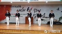 (조세금융신문=이지한 기자) 9일 한국세무사회관'에서 열린 2018 한국세무사회 신년인사회에서 5인조 남성중창단 '컨템포디보'가 '네순도르마'를 노래하고 있다.