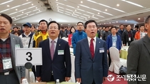 (조세금융신문=이지한 기자) 26일 강원도 용평리조트 타워콘도 눈마을 이벤트홀에서 열린 중부지역세무사회 2017 추계회원세미나에서 이창규 한국세무사회장(중앙 우측)과 이금주 중부지역세무사회장(중앙 좌측)이 애국가를 제창하고 있다.