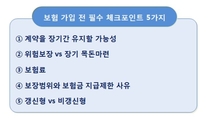 (조세금융신문=이지한 기자) 전업주부 A씨는 2년 후 전세금 인상에 대비하기 위해 월 적립형 금융상품을 찾던 중 저축성보험 상품(만기 10년)이 금리가 가장 높아 가입했으나, 2년 후 추가 전세금 납부를 위해 저축성보험을 해지하려고 환급금을 알아본 결과 납입원금 대비 10% 이상 손해가 발생한다는 것을 뒤늦게 알고 후회했다. 40세 직장인 C씨는 아버지가 암 진단을 받자마자 암보험에 가입해야겠다는 생각이 들어 알아보고 있던 중 월 납입보험료가 가장 적은 甲보험사의 갱신형암보험에 가입했다. 어느 날 ‘갱신보험료가 큰 폭으로 인상된다‘는 뉴스를 듣고 과거에 가입한 상품안내장을 펼쳐보니 향후 예상 갱신보험료가 지속적으로 상승하여 가입당시의 비갱신형 상품보다 총 납입보험료가 비싸지고, 퇴직한 60세 이후에도 만기까지 보험료를 지속적으로 납입해야 한다는 사실을 뒤늦게 알고 큰 걱정에 휩싸였다. 금융감독원은 이같이 보험가입 후 후회하는 일을 막기 위해 보험에 가입하기 전 꼭 확인해봐야할 5가지 체크포인트를 28일 금융꿀팁으로 발표했다. ▲ 계악을 장기간 유지할 가능성 보험상품은 미래의 예측하기 어려운 위험에 대비하기 위한 위험보장과 노후의 안정적인 생활을 위한 자금(연