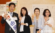 (조세금융신문=전한성 기자) 제29대 한국세무사회장선거 투표가 동시에 진행될 '대전지방세무사회 제41회 정기총회'가 26일 오전대전 동구 가양동 선샤인호텔에서 열린 가운데 손윤 후보 캠프 직원들이 정연(왼쪽) 부회장 후보와 기념촬영을 하고 있다.