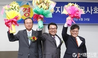 (조세금융신문=전한성 기자) 제29대 한국세무사회장선거 투표가 동시에 진행될 '광주지방세무사회 제41회 정기총회'가 24일 오전광주 서구상무대로 마리아쥬웨딩스퀘어에서 열린 가운데김영록(가운데) 신임 회장과박봉식(왼쪽), 정성균 부회장이 기념촬영을 하고 있다.