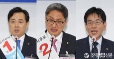 (조세금융신문=전한성 기자) 제29대 한국세무사회장선거 투표가 동시에 진행될 '대구지방세무사회 제41회 정기총회'가 23일 오전 대구 수성구 만촌동 인터불고 호텔에서 열린 가운데감사 후보자들이 연설을 하고 있다.왼쪽부터 기호 1번 김형상 후보, 기호 2번 유영조 후보, 기호 3번 백정현 후보.