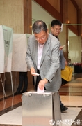 (조세금융신문=전한성 기자) 제29대 한국세무사회장선거 투표가 동시에 진행될 '대구지방세무사회 제41회 정기총회'가 23일 오전 대구 수성구 만촌동 인터불고 호텔에서 열린 가운데총회를 마친 한 회원이 한 표를 행사하고 있다.