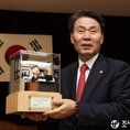 (조세금융신문=전한성 기자) '제28대 정구정 한국세무사회장 퇴임식'이 1일 오전 서울 서초구 명달로 한국세무사회관에서 열린 가운데 정 회장이 자신의 캐리커쳐를 전달받은 후 기념촬영을 하고 있다.