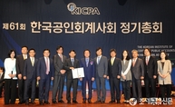 (조세금융신문=전한성 기자) 한국공인회계사회가17일 오후서울여의도63컨벤션센터그랜드볼룸에서'제61회정기총회'를개최한 가운데 강성원(왼쪽에서 7번째) 회장과 표창장 수상자들이 기념촬영을 하고 있다.