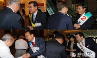 (조세금융신문=전한성 기자) '제22회서울지방세무사회 정기총회'가 18일 오후 서울 여의도 한화63시티에서 열린 가운데 제29대 세무사회장선거 감사후보들이 세무사들과 악수를 나누며 지지를 호소하고 있다.상단부터 기호 1번 김형상 후보, 기호 2번 유영조 후보, 기호 3번 백정현 후보.
