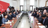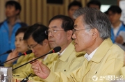 (조세금융신문=전한성 기자) 새정치민주연합 문재인대표가 9일 오후 서울시청에 마련된 '서울시메르스 대책본부'를 방문해 박원순 시장과 함께 현황보고를 듣고 서울시의 지원요청 사항을 청취했다. 문 대표는 이날 오전 국회 당 대표회의실에서 열린 시·도당 광역의원협의회 대표자 연석회의에 참석해 중동호흡기증후군(메르스) 사태 대응에 대해 "정부의 한심하고 무능한 태도에 비하면 요즘 박원순 시장을 비롯한 우리당 소속 지자체장들이 정말 잘하고 있다고 생각한다"고 밝혔다.