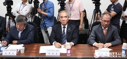 (조세금융신문=전한성 기자) 9일 오후 제29대 한국세무사회장 선거에 나선 기호 1번이창규 후보의 선거사무소 개소식이 '메르스 사태' 여파로 공식적인 행사를 취소한 가운데 이(가운데) 후보와 러닝메이트인 이수화(왼쪽), 김종화 부회장 후보가출마 소견을 밝히고 있다.